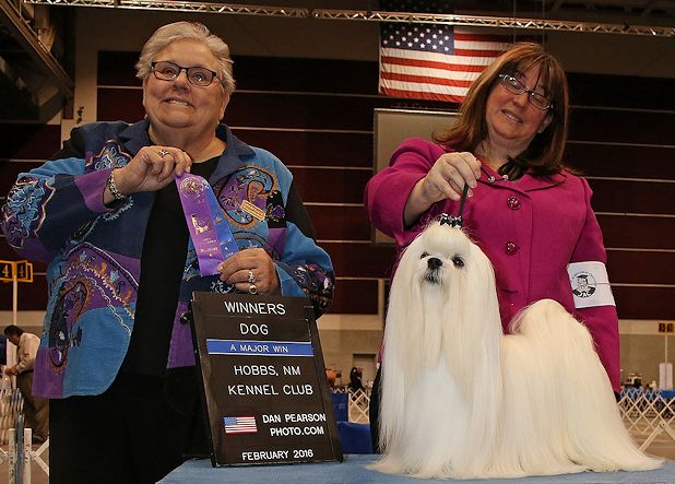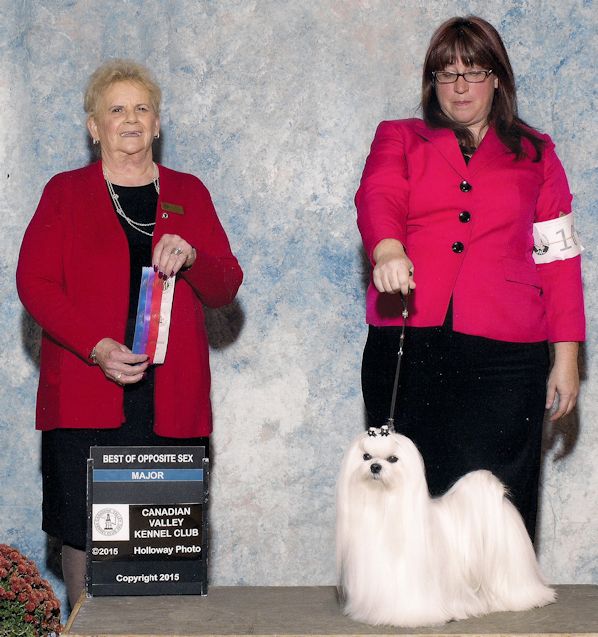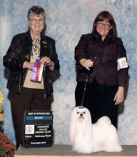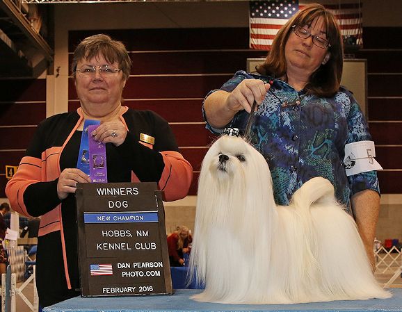 Lasee is an outgoing boy with an ultra silk coat and elegant side movement. He weighs about 8 pounds with a chunky body. Look for his kids in the ring next year! |